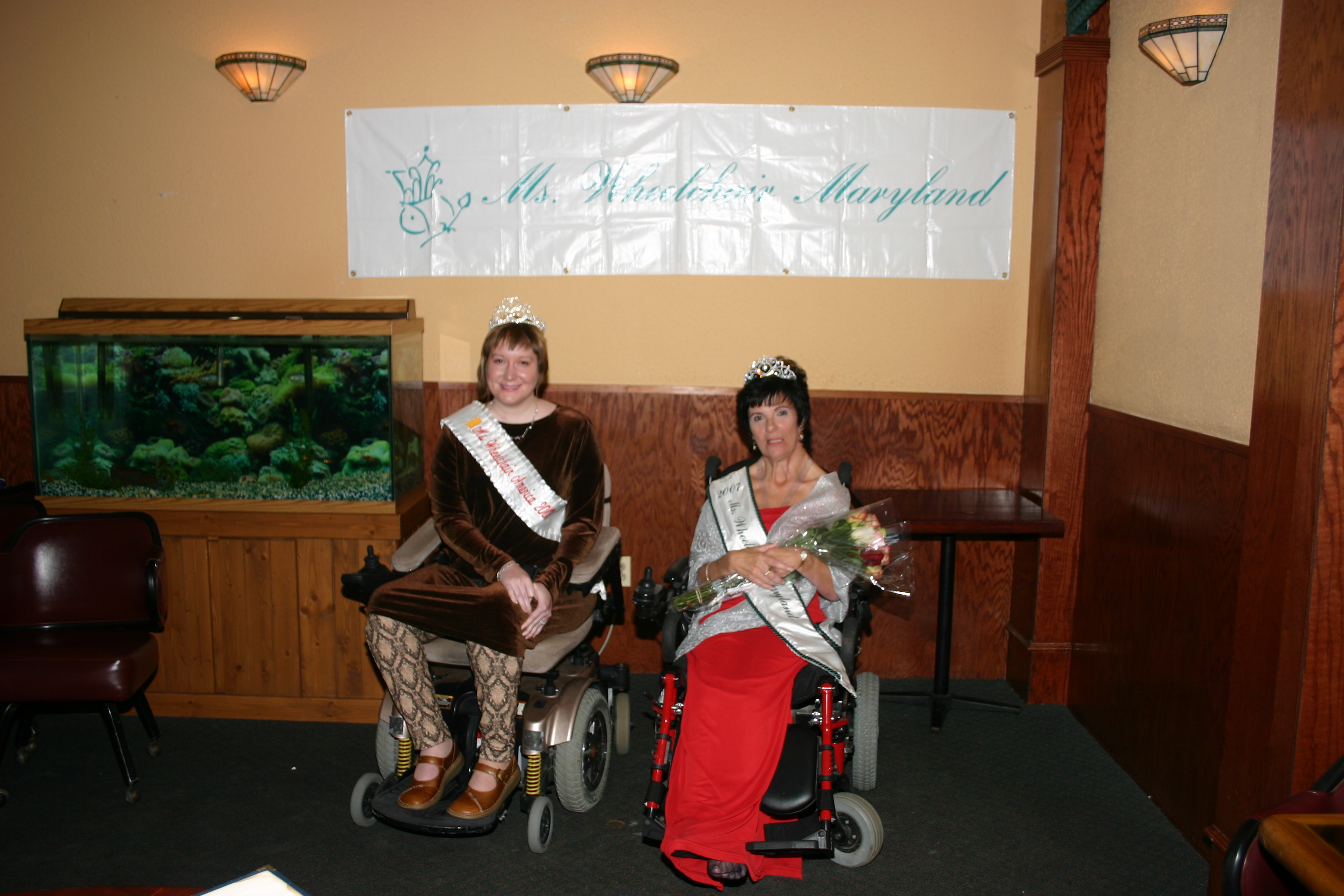 Nov 13th, 2008 | By Michael McGrath | Category: On The Road..., Previous TitleholdersIntroducing Ms. Wheelchair Maryland 2007, Cathy Porter. Ms. Porter accepted the crown from her predecessor, Liza Patchel. The crowning took place Saturday evening during an intimate dinner gala at the Doubletree Hotel in Bethesda, Md. During Ms. Porter’s year-long reign, she will travel the state promoting the Ms. Wheelchair Maryland and Ms. Wheelchair America programs as well as her platform: Self-Defense and Security for the Wheelchair User. Next July, Ms. Porter will represent Maryland in the Ms. Wheelchair America 2008 competition to be held in Bethesda, MD.