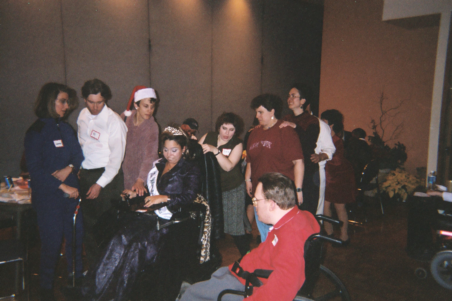 Photo GalleriesHoliday Party 2003Members of DateAble Washington and Making Connections enjoyed a fun and festive evening at the Annual Holiday Party on December 13, 2003. Ms. Wheelchair Maryland 2004 Juliette Rizzo was on hand to add to the holiday spirit! |